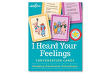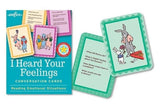 Each flashcard features an everyday scenario such as; being picked for a team or accidentally breaking a vase. Questions on the back of each card invite parents and children to discuss what is happening and how the characters are feeling in each scene. By looking at the character’s faces and reflecting on a child’s own experiences, these cards guide children to recognize emotional dynamics in a variety of situations.