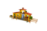 Farmer Paul always has his hands full. The pigs are grunting loudly and want to be fed, and the cow in the barn is already looking pretty hungry. But before Farmer Paul feeds her some hay, the little calf gets its milk from the bottle. All the animals come into the barn to eat. Especially the pigs, hoping for a juicy apple or a crunchy carrot. Once they have eaten their fill, they go back outside. Farmer Paul has put up fences around the farm so that everyone can get some fresh air. But the fences don’t stop the cat from climbing onto the roof or the doves from flying all over the place. They always come back, though, because Farmer Paul takes such great care of them, too. He has even built the doves their own house, called a dovecote, where they like to hide from the cat when it comes slinking around. Pretty nifty! There’s room for even more animals in the matching pony box, which is available separately. Fun Fact: The cat prefers to walk on the roof. The mouse likes to hide in the hayloft. Content: 1x stable building, 1x Farmer Paul, 1x cow, 1x calf, 1x pig, 1x piglet, 1x cat, 1x dove, 1x mouse, 1x dovecote, 2x flower box, 2x straw feeder, 4x fence long, 2x fence short, 1x crane with winch, 1x fodder carousel, 1x hay hollow, 1x water hose, 1x ladder, 1x feed box, 1x rack, 1x bowl, 1x feeding bottle, 1x cow brush, 1x feeding trough, 1x pitchfork, 1x spikeable hay, 1x broom, 1x wheelbarrow, 1x bucket, 1x straw bale, 1x hay bale, 8x carrots, 6x apples, 1x eggs, 1x sticker sheetIncludes: