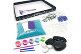 Use the large tray, colored sand and mini rake to create different galaxy effects every day. Decorate 3 stones with glow in the dark rub-on transfers and acrylic paint.