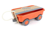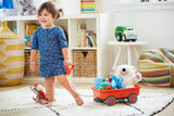 The Green Toys Wagon is sturdy and durable, and features a 100% cotton rope handle that easily tucks inside for convenient, safe storage. With chunky tires and a low-set bed, it is the perfect size for little ones to haul around their most prized possessions, both indoors and outside.