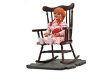 The Gallery line of PVC Dioramas dives into the world of horror movies with this sculpture based on the Annabelle series! Depicting the doll Annabelle sitting in a rocking chair, this sculpture measures 7 inches tall and features detailed sculpting and paint applications. Packaged in a full-color window box. Designed by Caesar, sculpted by Rocco Tartamella.