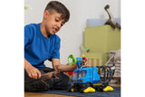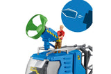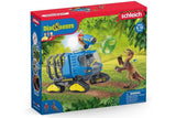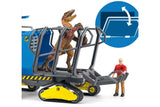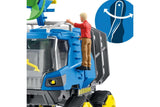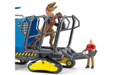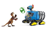What has Flynn brought back from his research mission? He has just captured a dangerous Dakotaraptor and loaded it into the cage on the track vehicle. It’s better that way, because the giant dinosaur looks like trouble! Flynn certainly doesn’t want anyone getting caught in those fangs! How did he manage to capture the Dakotaraptor? From the safety of his vehicle, he could elevate the cab to get a great view of his surroundings and spotted the dinosaur from above. Then he positioned the tornado gun on the roof and waited for the right moment to stun the dinosaur. Hit by the tornado gun, the Dakotaraptor was quite tame and could be loaded into the cage. Pretty clever!
