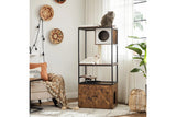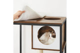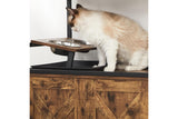 This cat condo comes with everything (except the cat). The black metal frame encloses a storage space with engineered wooden doors at the base to finally give you a place to hide the claw clippers your cat hates to see, while the raised bowl stand is just right for giving your cat the treats they deserve.