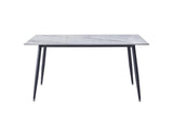 The marble-like tabletop and sleek black chairs add a touch of elegance to any dining room.