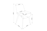 - Chairs: 53 × 59 × 87 cm, PU upholstery, black powder-coated metal frame.