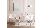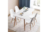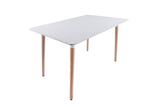 A blend of gloss white finished top and beech wood legs, this table utilises a contemporary design while maintaining a robust form that can seat the whole family.