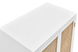 Pack everything away in luxurious style with this rattan panelled sideboard that boasts an exquisite art deco style with its golden rattan pattern and matte white finish.