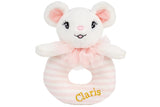 Featuring a handy loop for hanging from a pram, cot, high chair or bouncer. Dobby holds a star shaped teether, a soft cake and a sock. Features different textures and tactile features, including crinkle and a bell.