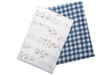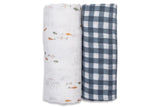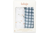 Lulujo: Cotton Swaddles – Fish & Navy Gingham (2 Pack)