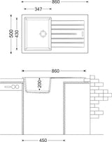 Carysil Composite Sink Insert 860 x 500mm Black Tip Toe