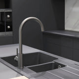 Foreno Brushed Gunmetal Cold Start E-Steel Minimal Gooseneck Sink Mixer - Gun Metal