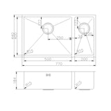 SINX 770 x 440mm Stainless Steel Handmade Double Sink Bowl