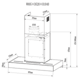 Vogue T-Canopy Rangehood Stainless Steel with Black Glass - 90cm