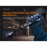 - Instant power activation with momentary tactical tail switch; simple output selection with side switch.