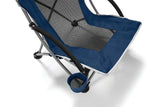 Low-profile beach chair with adjustable Versa-Brella provides UPF 50+ shade coverage. Featuring a mesh panel design for airflow, drip drying, and cooling, perfect for hot days.