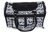 - Soft-sided semi-collapsible pet carrier features durable quilted polyester construction, and measures 19” L x 10” W x 12” H.