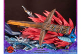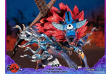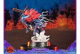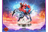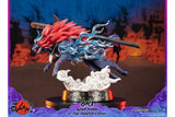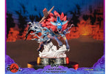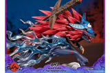 When in his wolf form, Oki has a blue aura emanating from his chest, making him look even more fierce and powerful, which is captured in this highly detailed statue with a cloud of smoke on the base as if a trail was left behind as he leaps into battle.