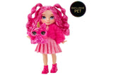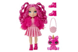 Features: Magenta Monroe has her own unique style. She is dressed in a pink dress with soft tweed skirt and molded top, as well as a soft faux fur jacket. And she comes with matching pink shoes and purse. She has an adorable younger face sculpt and beautiful curly pink hair with two pigtails. - Magical Pet: She comes with a super cute magical pink pet kitty with a horn.