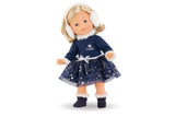 Priscille is stylishly dressed to shine ! Our limited edition, 14-inch doll features a soft, “underwear effect” body and silky blonde hair that is easy to comb and style. Her head, arms and legs are made of soft-to-the-touch vinyl that is delicately scented with vanilla — a Corolle signature, and her sleepy eyes close when she lays down for a nap or at bedtime. Priscille is dressed for cool temperatures in a long-sleeved dress. A matching earmuffs and navy blue, faux-fur trimmed boots complete her ensemble. For a change of season or occasion, the ma Corolle Collection offers more than 100 different outfits and accessories. ma Corolle: My doll, my stories! Ages 4 and up.