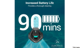 The newly designed battery only takes 2.5 hours to fully charge and provides over 90 minutes of cleaning capabilities. Ideal for above-ground pools and in-ground pools with no slopes.