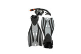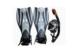 4pc Oz Ocean Rotto Outdoor Swimming Goggles Mask Snorkel Fin Set L-XL Grey Black