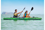 The Intex Challenger K2 kayak offers two people a sleek, easy-paddling, and highly portable craft to explore lakes and easy rivers. It’s made of the company’s rugged, Super-Tough vinyl that’s puncture- and UV damage-resistant for long term durability, and the cockpit is designed to optimize comfort and space. High visibility graphics allow others to see you easily on the water, and the craft is US Coast Guard approved.