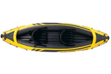 Sporty graphics for high visibility and low profile for lakes and mild rivers.;Streamlined design for easy paddling and the cockpit is designed for comfort and space.;There is a grab line on both ends and a cargo net for extra storage.;Adjustable inflatable seats with backrest and Inflatable I-beam floor for comfort and rigidity.;Removable skeg for directional stability.