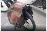 BROWN Canvas Bike Rear Bag Double Pannier Frame Bicycle Back Seat Storage