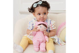 Introducing GUND’s new line of baby dolls created from sustainably sourced from 100% recycled materials! Each adorable dolly friend is crafted with luxe, ultra-soft recycled plush, recycled thread including embroidery, plastic fibre fill and sustainable packaging. It’s GUND’s gift to future generations of cuddlers! Packaging is made from recycled materials – a paper hangtag and cord, recycled sewn in label, packaged in a post-consumer polybag. This sweet baby doll has brown hair, blue eyes, rosy cheeks and a sweet smile. She wears a pink onesie and coordinating hat and is ready for cuddles!