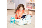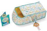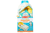 This adorable portable cloth bassinet gives kids’ favorite dolls and stuffed animals (up to 18 inches) a soft and cozy place to snuggle at home or on the go! Sized just right for dolls up to 18 inches, the patterned quilted bassinet has handles, reinforced border bindings, and a pocket to store the included nursery rhymes booklet.