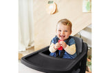 - The hidden lift mechanism adjusts height easily and lets baby join in at the table