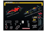 Racing action like the Formula 1 pros with the Carrera GO!!! Flying Lap race track! Perfect for young racing fans aged 6 and over, this set offers space for exciting duels between two drivers. Choose between the Red Bull Racing RB19 “M. Verstappen, No.1” and the Ferrari SF-23 “C. Sainz, No.55” and race down the track.