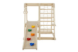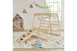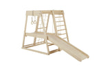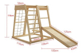 Elevate your childs playtime with our comprehensive Toddler Indoor Wooden Playground Jungle Gym, thoughtfully designed to include a reversible frame for climbing and sliding, and now, an added swing for even more dynamic fun.