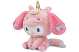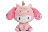 My Melody, Hello Kitty’s best friend, is a sweet honest white rabbit who always wears a pink hood knit by her beloved grandma. My Melody looks cuter than ever as a soft, cuddly pastel pink unicorn with rainbow details. This plush features the Sanrio star in a sitting pose, detailed with velvety-soft pink hooves that complement her large, vibrant pink bunny ears.