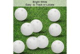 - Experience the convenience and durability of our white practice golf balls. Their bright color allows for easy spotting in any terrain, while their lightweight plastic material ensures even lively children won’t break any windows. Perfect for any golf enthusiast looking to improve their game.