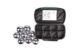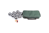 Our deluxe boule set is not only shiny and beautiful it guarantees family fun for hours on end. The set comes with eight 75mm diameter boules of polished alloy, one 35mm wooden jack, a measuring device that will settle any scoring disputes and a green canvas carrying bag that makes the game mobile and easy to transport.