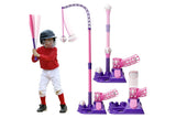 3-in-1 Tee Ball Set for Kids Retractable Baseball Batting Tee Set Pink