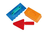 The Hape Master Bricklayer set is the perfect tool kit for kids who love to play in the sand. This set features three pieces to help you make the perfect bricks: a brick mold, a smoother tool, and a shaper tool. Each piece is brightly colored and made from durable HDPE and ABS plastics. Build a giant sand castle with a moat, or use your tools to sift through the sand for shells! Encourages creative play, healthy outdoor activity, and the development of fine motor skills.