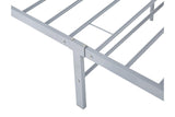 The bed includes a series of metal slats along the base, providing robust support for a single mattress without the need for a box spring.