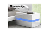 Bedside Tables Drawers RGB LED Side Table White Gloss Nightstand Cabinet
