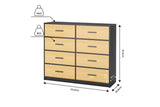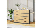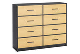 Fraser Country -Lada Home 8 Drawer Storage Dresser Wide Black & Oak With Black Handle