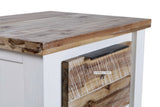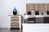Features: White timber with Acacia wood accents Enduring attractive style Crisp white brush-finish frames Interesting hand painted antique finish on tops and drawers