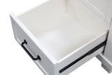 Features: Two spacious drawers for ample storage Crafted from durable and sturdy Solid Pine wood Timeless White finish for a touch of sophistication Clean lines for a modern and versatile design