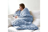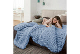 100 x 120cm Chunky Knitted Blanket Throw Blanket Thick Yarn Blanket-Blue