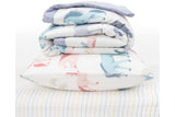 Made from the amazing quality, 100% cotton muslin fabric we have to come to love from Little Unicorn. This set includes a comforter, cot/toddler bed sheet and a pillowcase. The comforter is a great size for use in converted cots or a toddler bed. It is a breathable, light weight blanket, that is also warm and cosy for all seasons. A cot sheet and pillowcase to match, will help to complete the look!