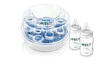 The Philips Avent microwave steam sterilizer is a great choice for fast, effective sterilizing at home or away. Up to 4 Philips Avent bottles or products can be sterilized at once, with 99.9% of germs killed in just 2 minutes.