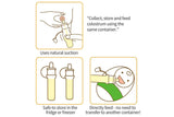 - Nib suctions colostrum off the nipple, can also be removed to express directly into the collector.