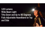COB LED technology provides bright wide angle light in high, low or strobe modes. The light tilts down 90 degrees in clickable increments so you can aim the light right where you need it. The comfortable elastic headband adjusts on the top and side to accommodate most head sizes and headgear. Easy push - button operation selects operating mode plus off.