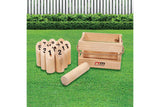 - Contents: Carrying case with rope handle, throwing stick, 12 numbered pins