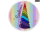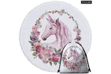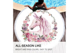 Floral Unicorn Round Beach Towel With Tassels For Adult